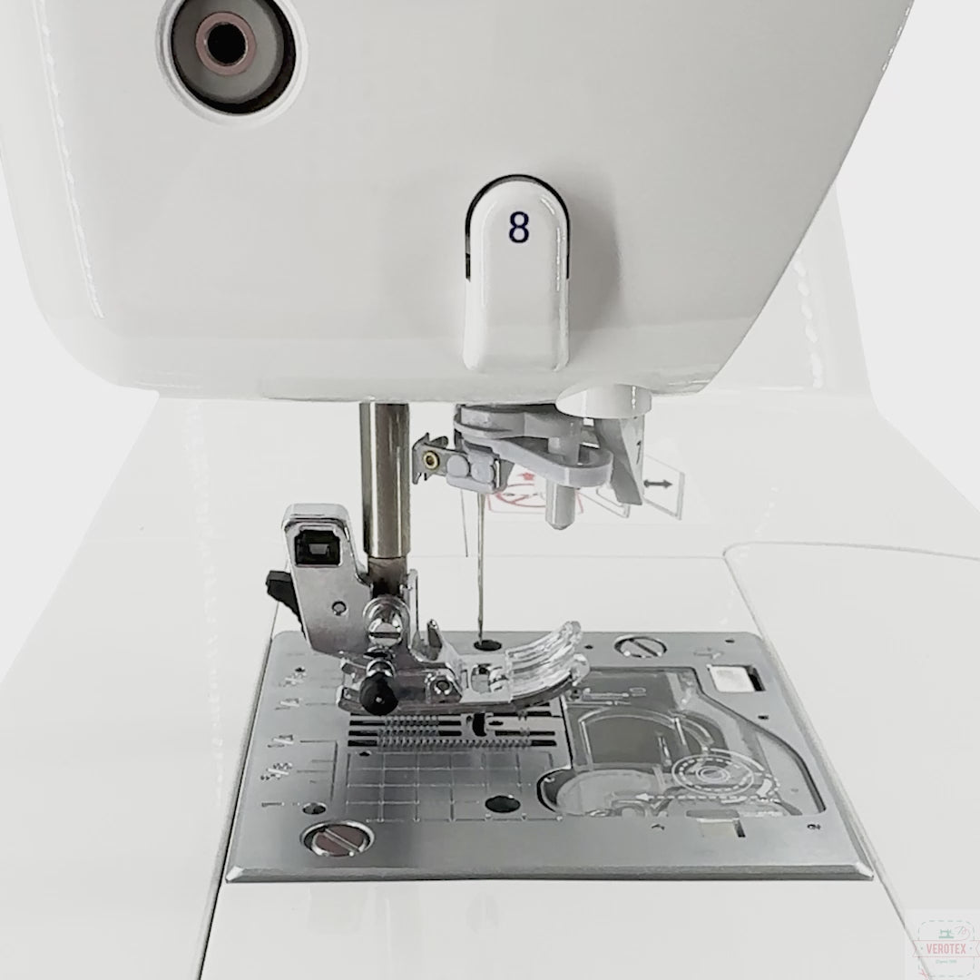 Elle propose 155 motifs de points, incluant des points utiles, des points décoratifs, des points d'application, et des alphabets complets en lettres majuscules et minuscules. La longueur et la largeur des points sont réglables, pour s’adapter à toutes vos créations.