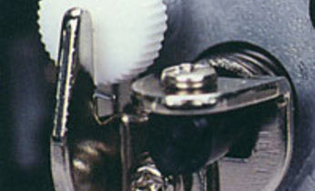 Le guide-fil inférieur du boucleur se désengage pour un enfilage rapide et facile en quelques secondes. Il suffit de glisser le fil dans la fente et d'enclencher le boucleur.