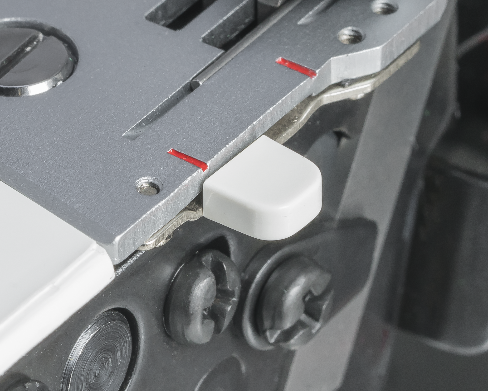Des micro-interrupteurs de sécurité situés sur les capots avant et latéraux offrent une sécurité accrue pendant la couture. Si les capots sont ouverts, la machine ne coud pas.