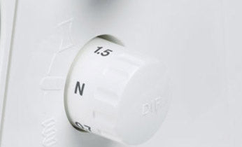 La largeur de coupe de la lame inférieure se règle facilement et rapidement en tournant la molette, ce qui vous permet de réaliser des coutures et des bords roulés parfaits.